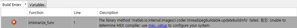 MATLAB에서 개발하고 MATLAB Coder를 사용하여 C 또는 C++ 코드로 변환하려고 하였다. 그런데 MEX 컴파일러를 확인할 수 없다는 에러가 났습니다.