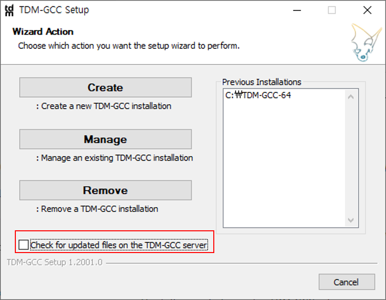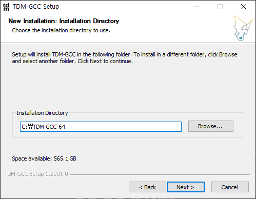 - 설치 경로는 공백이 없는 C:\TDM-GCC-64 경로로 지정하여 설치