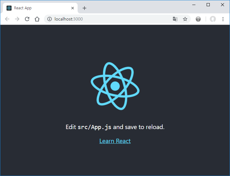 npm start 실행하여 완료했다면 http://localhost:3000/ 로 접속하여 확인한다.