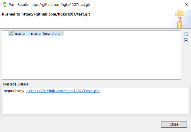 다시 로그인 창이 뜹니다. 처음에만 2번 로그인하고 그다음에는 한 번만 로그인하면 됩니다. 아이디 비밀번호를 입력하고 [OK] 버튼을 클릭합니다. 완료가 되면 아래 그림처럼 Push 결과 화면이 보입니다.