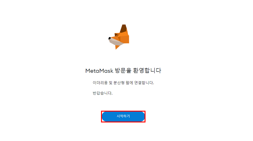크롬 확장프로그램에서 MetaMask를 선택하고 "시작하기" 버튼을 클릭합니다.