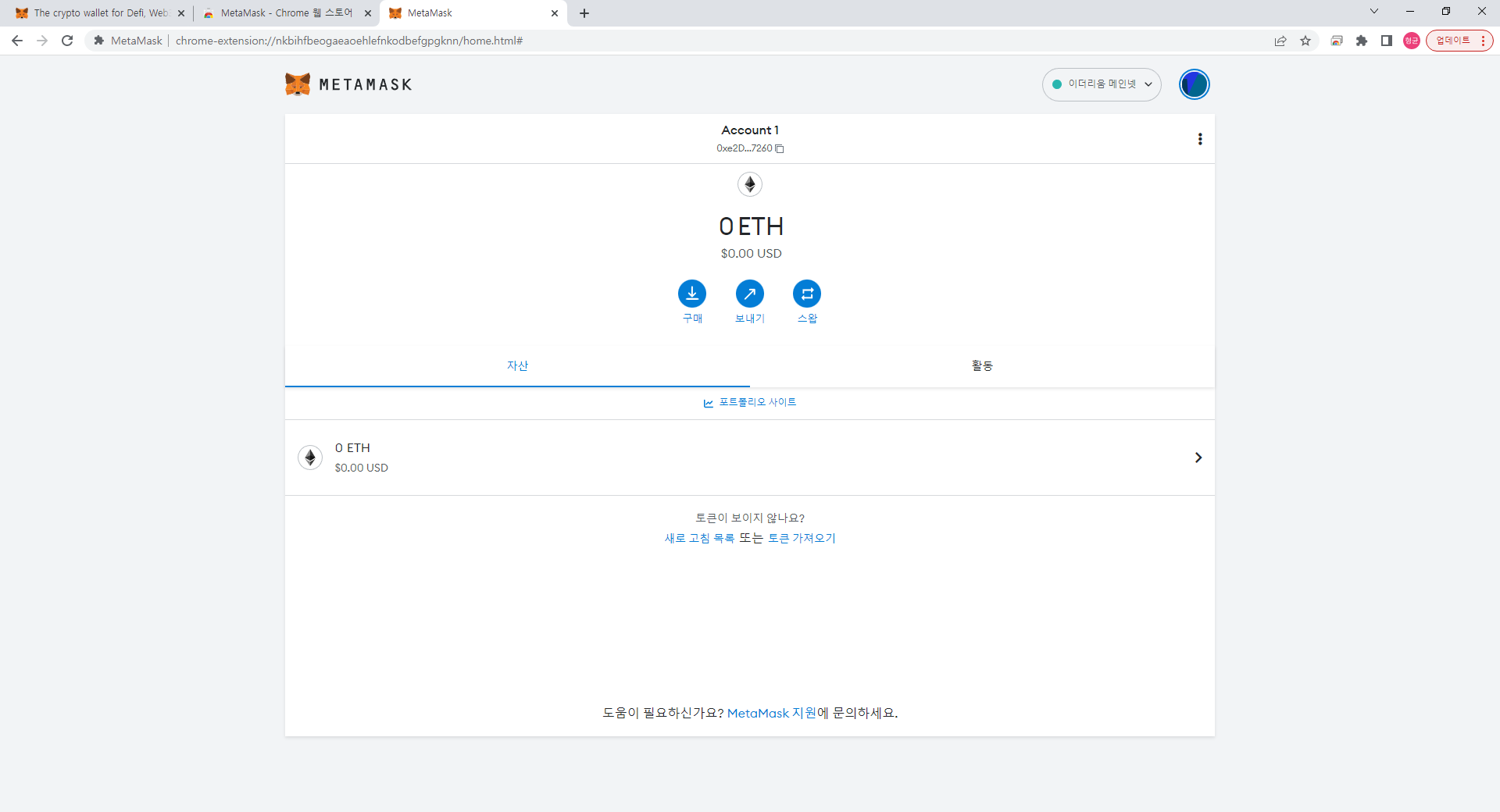 메타마스크 접속 시 화면입니다.