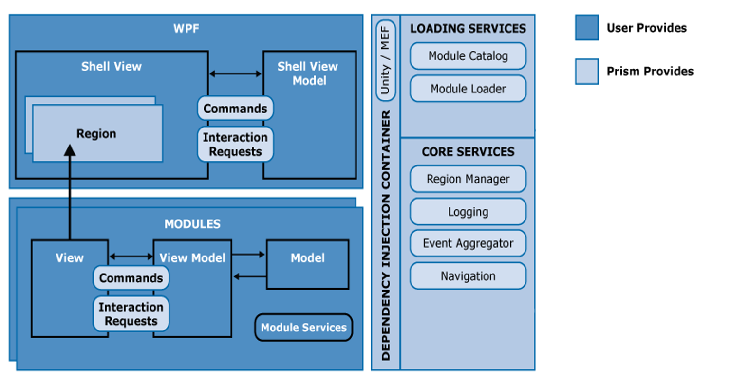 즉, WPF 어플리케이션을 만들 시 MVVM 디자인 패턴으로 개발하고 이에 추가적으로 Prism이 제공하는 CompositeView 제작방식과 Event Aggregator 기능들을 사용할 수 있는 것입니다.