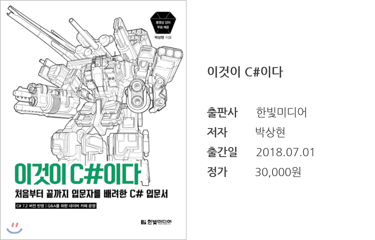 이 책은 C#. NET 프레임워크 세계에 첫 발을 들이는 입문자를 위한 책이다. 따라서 딱딱하지 않은 대화식 표현으로 1:1 강의처럼 배울 수 있는 것이 이 책의 가장 큰 장점이다. 또한 C#의 핵심 문법은 물론, 프로그래밍 동작 원리까지도 입문자 입장에서 하나하나 꼼꼼히 설명하였다. 책을 덮을 때쯤이면 기초 문법부터, 고급 문법, 그리고. NET 프레임워크의 활용까지 C#의 전반적인 큰 틀을 자연스레 익힐 수 있을 것이다.『이것이 C#이다』로 C# 프로그래밍을 시작한다면, 튼튼한 기본기가 갖춰져, 더 이상 실전과 응용도 두렵지 않습니다.
