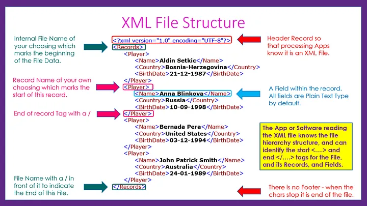 XML(eXtensible Markup Language)은 데이터 전송 및 저장에 맞게 조정되었습니다. XML은 사용자 정의 태그를 사용하여 정보를 계층적으로 구성하여 사람과 기계의 가독성을 높입니다. XML은 서로 다른 시스템 간의 데이터 교환에서 빛을 발하며 원활한 커뮤니케이션을 촉진합니다. 다음은 XML의 구조입니다.