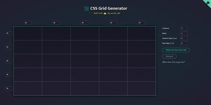 CSS Grid Generator는 복잡한 그리드 레이아웃을 만들고 해당 CSS 코드를 생성하는 데 유용한 도구입니다.