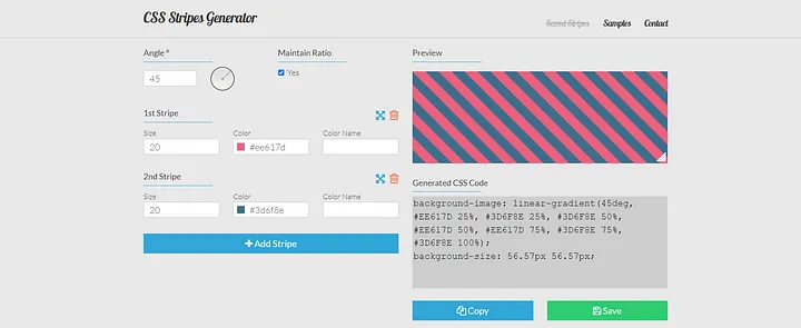 CSS Strips Generator는 스트라이프 배경을 만들고 디자인을 향상시키는 데 사용할 수 있습니다.