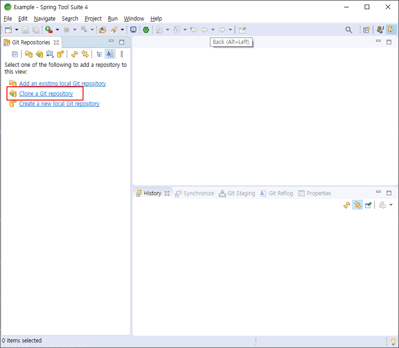 Git 퍼스펙티브 화면에서 [Clone a Git repository] 를 클릭합니다.