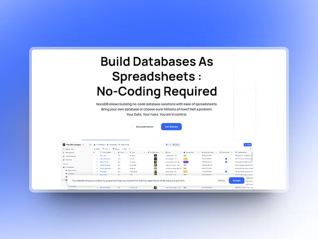노코드(no-code) 플랫폼으로 데이터베이스 관리를 혁신하는 NocoDB는 데이터 처리를 스프레드시트를 사용하는 것과 유사한 직관적인 경험으로 바꿔줍니다. 자체 데이터베이스를 통합하든 새로 시작하든, 데이터를 완벽하게 제어하면서 수백만 개의 행을 손쉽게 관리할 수 있습니다. Accenture, 현대, 월마트 등 6,500개 이상의 조직에서 신뢰하는 NocoDB는 칸반, 갤러리와 같은 다양한 보기를 제공하며 UI, API, SQL을 통해 원활한 데이터 상호 작용을 보장합니다. 모든 규모의 비즈니스에 전례 없는 접근성과 제어 기능을 제공하여 데이터 소유권 및 확장성의 새로운 패러다임을 제시하는 NocoDB를 만나보세요.