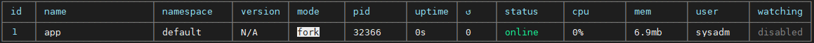 아무런 옵션없이 PM2를 사용하여 실행하면 위의 그림처럼 포크(fork) 모드로 애플리케이션을 실행합니다.